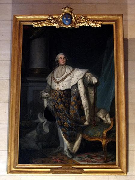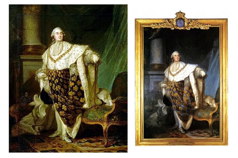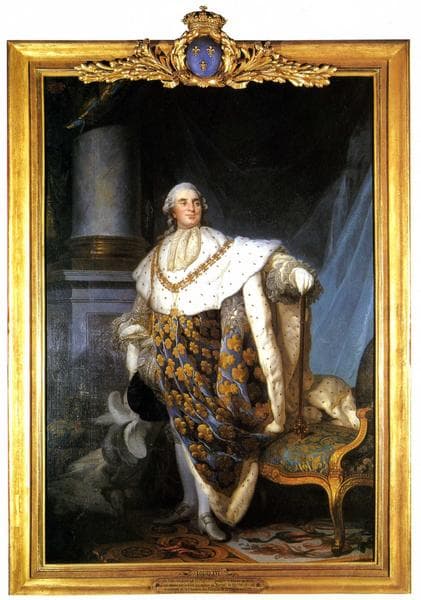 tableau et son cadre : portrait en pied de Louis XVI en costume de sacre