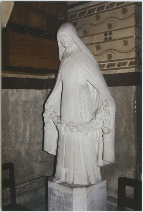L'église Saint-Nicaise est située dans la cité-jardin du Chemin Vert dans le sud de l'agglomération rémoise, cité créée après 1918 par le Foyer Rémois, fondé en 1912 par l'industriel Georges Charbonneaux. Cette église possède une valeur particulière à Reims car la ville a été rasée à 90% lors de la Première Guerre Mondiale. Il s'agit d'un monument emblématique de la Reconstruction qui prend place au sein d'une cité, sorte de cité radieuse, assez exceptionnelle où domine la végétation. L'église a été construite par l'architecte Jean-Marcel Auburtin (1872-1926) qui a également travaillé à l'édification de la cité-jardin. L'église a été édifiée à partir de 1923, et sa décoration intérieure achevée en 1935. Les peintures murales on été réalisées par Maurice Denis. Gustave-Louis Jaulmes, artiste français né à Lausanne, a réalisé le reste du décor. Le travail en verre moulé est de René Lalique. Dès l'inauguration de l'église les contemporains ont salué une décoration d'art moderne religieux très homogène et d'une grande qualité. Ce décor a été conçu avec l'ensemble des objets mobiliers par Georges Charbonneaux, le fondateur du Foyer Rémois. A la lueur des archives, il apparaît qu'il s'est énormément investi non seulement pour la construction de l'église mais aussi pour sa décoration (à l'heure actuelle, le Foyer Rémois est toujours propriétaire des objets mobiliers et mène une politique active de restauration). L'industriel Georges Charbonneaux était aussi un amateur d'art et un collectionneur. C'est lui qui effectua le choix des artistes, en s'opposant parfois assez fortement à Jean-Marcel Auburtin. Ce dernier imaginait une décoration plus marquée par l'influence néo-byzantine, dans la droite ligne de l'architecture qu'il avait conçue. Toute la décoration, les peintures murales et les objets, forment un pur produit des Ateliers d'Art Sacré fondés en 1912 en réaction contre le style Saint-Sulpicien et l'académisme, en prêchant un art chrétien à la fois moderne et accessible à tous. Ces Ateliers ont contribué à renouveler l'art et la pensée chrétienne après le trouble de la guerre de 1914. On distingue des personnalités importantes, de premier plan, notamment Maurice Denis qui est le fondateur des Ateliers d'Art Sacré avec Valentine Reyre et Roger de Villiers, maître sculpteur dans les Ateliers. Emma Thiollier (1875-1973) était peintre et sculpteur. Elle a réalisé pour l'église Saint-Nicaise la statue de sainte Thérèse de Lisieux dont la récente canonisation en 1925 favorisa un culte important à cette époque. Cette statue répond à la statue d'Emma Thiollier, Sainte Jeanne d'Arc (PM51001787) qui est dans le même style. Emma Thiollier était la fille de Félix Thiollier, photographe et archéologue, ainsi que collectionneur d'art. Elle a rejoint Paris en 1892 et a été influencée par Jean-Paul Laurens qui a d'ailleurs réalisé une peinture murale dans cette église. Elle entre à l'Académie Jullian où elle est aussi influencée par Paul Flandrin. Elle présente ses oeuvres dans les salons parisiens à partir de 1899 et elle expose au Salon des Artistes indépendants à partir de 1904, où elle connaît un certain succès critique. Son oeuvre peint compte environ 300 tableaux et son oeuvre sculpté environ 60 pièces. Elle a beaucoup travaillé sur l'art religieux, c'était une artiste engagée dans le mouvement de l'Art Sacré (Dictionnaire des Indépendants, 1884-1914, préface de Serge Lemoine, Tome III). (Sources : Jonathan Truillet).