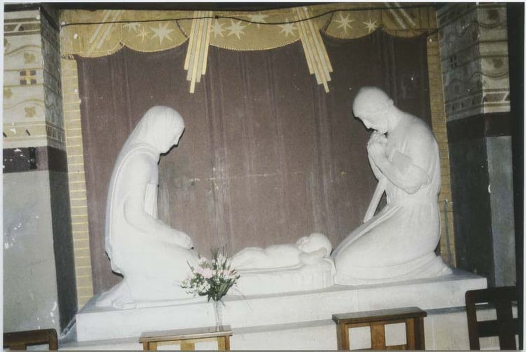 L'église Saint-Nicaise est située dans la cité-jardin du Chemin Vert dans le sud de l'agglomération rémoise, cité créée après 1918 par le Foyer Rémois, fondé en 1912 par l'industriel Georges Charbonneaux. Cette église possède une valeur particulière à Reims car la ville a été rasée à 90% lors de la Première Guerre Mondiale. Il s'agit d'un monument emblématique de la Reconstruction qui prend place au sein d'une cité, sorte de cité radieuse, assez exceptionnelle où domine la végétation. L'église a été édifiée à partir de 1923, et sa décoration intérieure achevée en 1935. Les peintures murales on été réalisées par Maurice Denis. Gustave-Louis Jaulmes, artiste français né à Lausanne, a réalisé le reste du décor. Le travail en verre moulé est de René Lalique. Dès l'inauguration de l'église les contemporains ont salué une décoration d'art moderne religieux très homogène et d'une grande qualité. Ce décor a été conçu avec l'ensemble des objets mobiliers par Georges Charbonneaux, le fondateur du Foyer Rémois. A la lueur des archives, il apparaît qu'il s'est énormément investi non seulement pour la construction de l'église mais aussi pour sa décoration (à l'heure actuelle, le Foyer Rémois est toujours propriétaire des objets mobiliers et mène une politique active de restauration). L'industriel Georges Charbonneaux était aussi un amateur d'art et un collectionneur. C'est lui qui effectua le choix des artistes, en s'opposant parfois assez fortement à Jean-Marcel Auburtin. Ce dernier imaginait une décoration plus marquée par l'influence néo-byzantine, dans la droite ligne de l'architecture qu'il avait conçue. Toute la décoration, les peintures murales et les objets, forment un pur produit des Ateliers d'Art Sacré fondés en 1912 en réaction contre le style Saint-Sulpicien et l'académisme, en prêchant un art chrétien à la fois moderne et accessible à tous. Ces Ateliers ont contribué à renouveler l'art et la pensée chrétienne après le trouble de la guerre de 1914. On distingue des personnalités importantes, de premier plan, notamment Maurice Denis qui est le fondateur des Ateliers d'Art Sacré avec Valentine Reyre et Roger de Villiers (1887-1958), maître sculpteur dans les Ateliers. Ce dernier était un artiste assez renommé, membre de la Société de Saint-Jean, qui regroupait plusieurs artistes chrétiens. Il était animé par la volonté de renouveler l'art sacré avec une sculpture caractérisée par la douceur des lignes et la rondeur des traits. Il fut membre des l'atelier de sculpture des Ateliers d'Art Sacrés. (Sources : Jonathan Truillet).