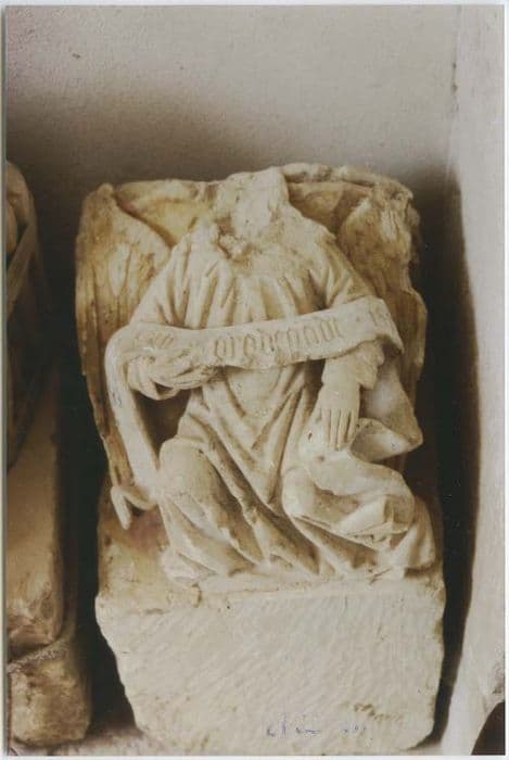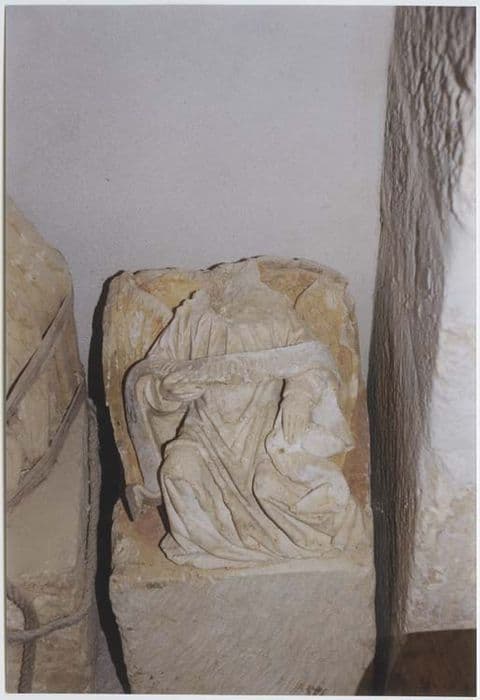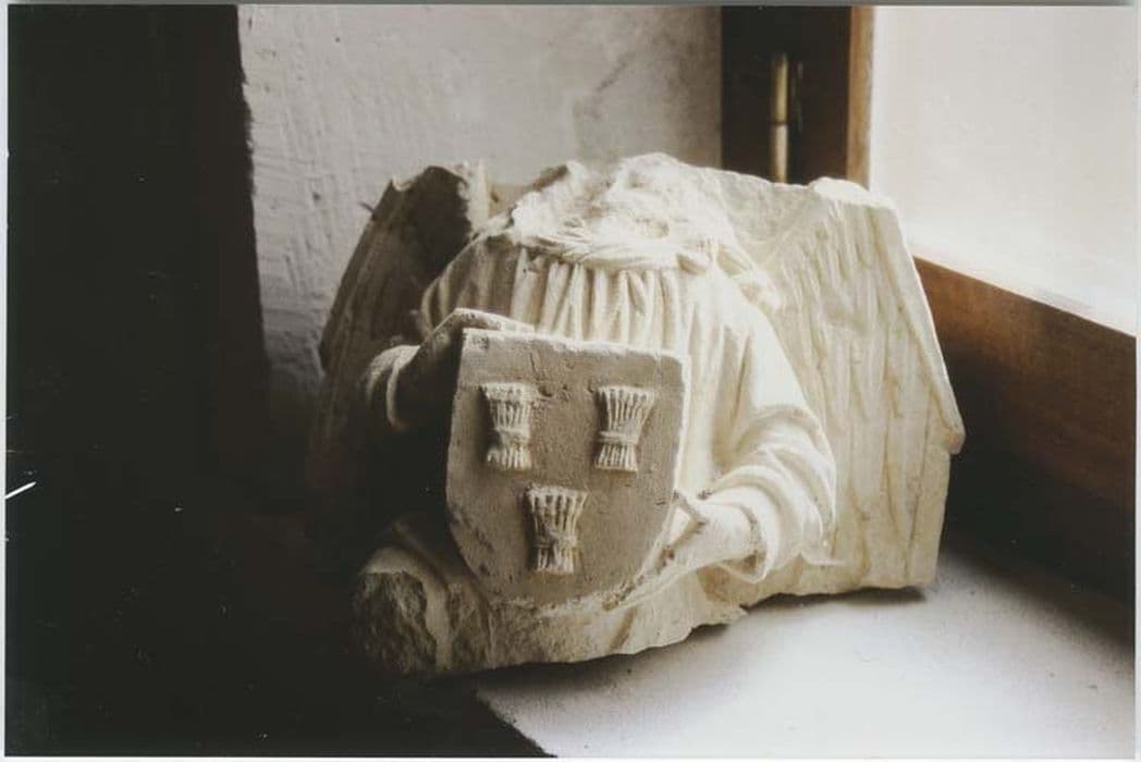 Deux socles de statues avec anges : l'un porte l'inscription sainte Radegonde, l'autre un blason avec deux gerbes de blé.