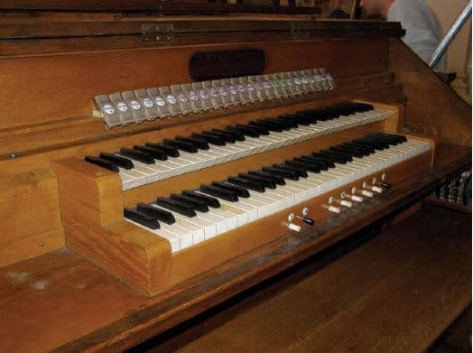 Orgue de 14 jeux réels sur deux claviers de 61 notes et un pédalier de 32 notes. Console séparée et retournée. Buffet limité à un soubassement en chêne mouluré et panneaux en contreplaqués. 4 sommiers à cases en sapin. 3 réservoirs à tables parallèles et plis compensés. Traction pneumatique tubulaire des notes et des jeux avec 4 combinaisons fixes. Tuyauterie : 1109 tuyaux métalliques, 48 tuyaux en bois.
