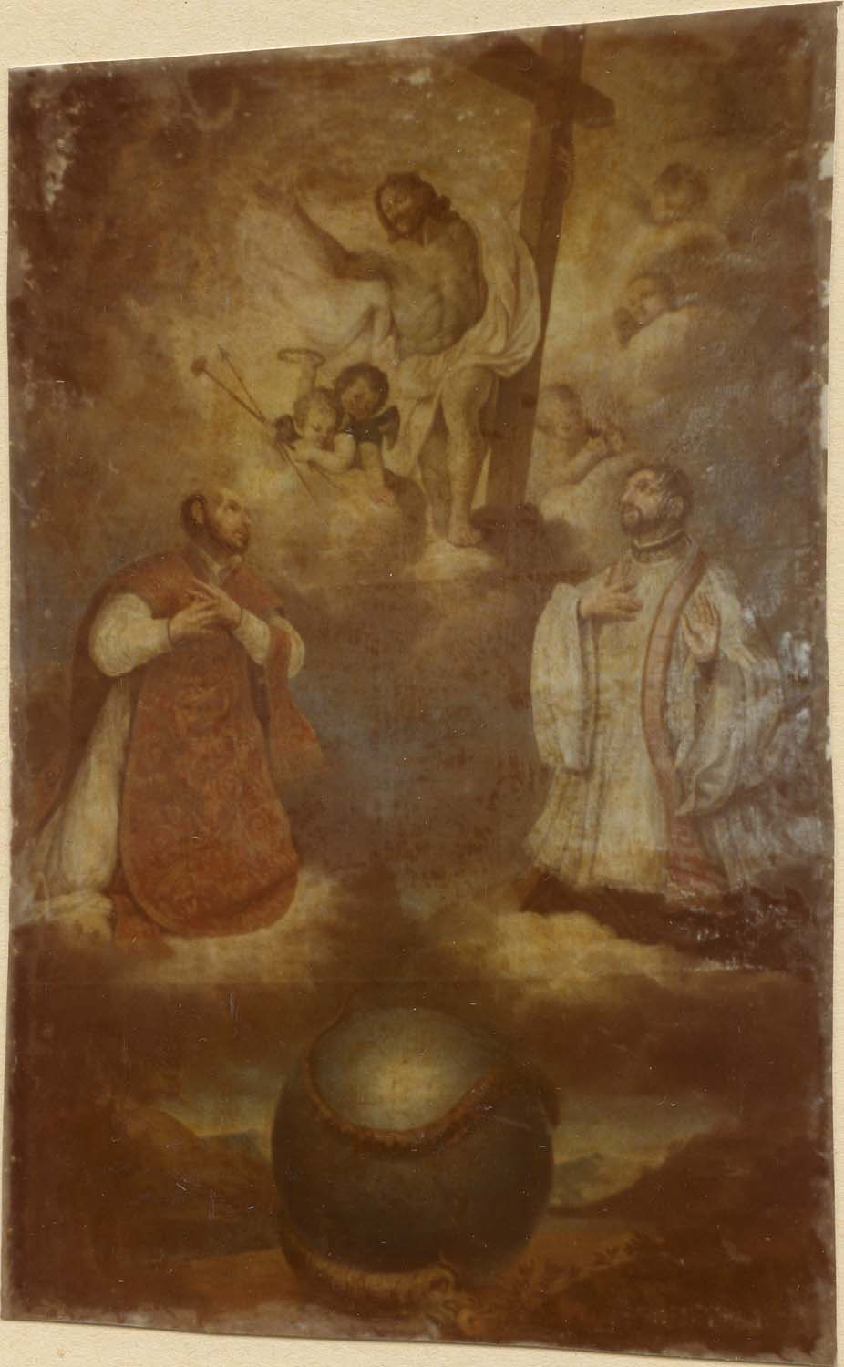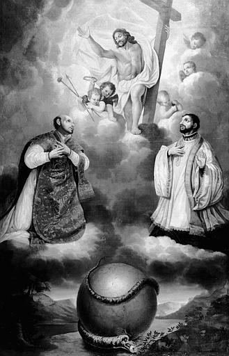 tableau : Christ sauveur du monde, entre saint Ignace et saint François-Xavier (Le)