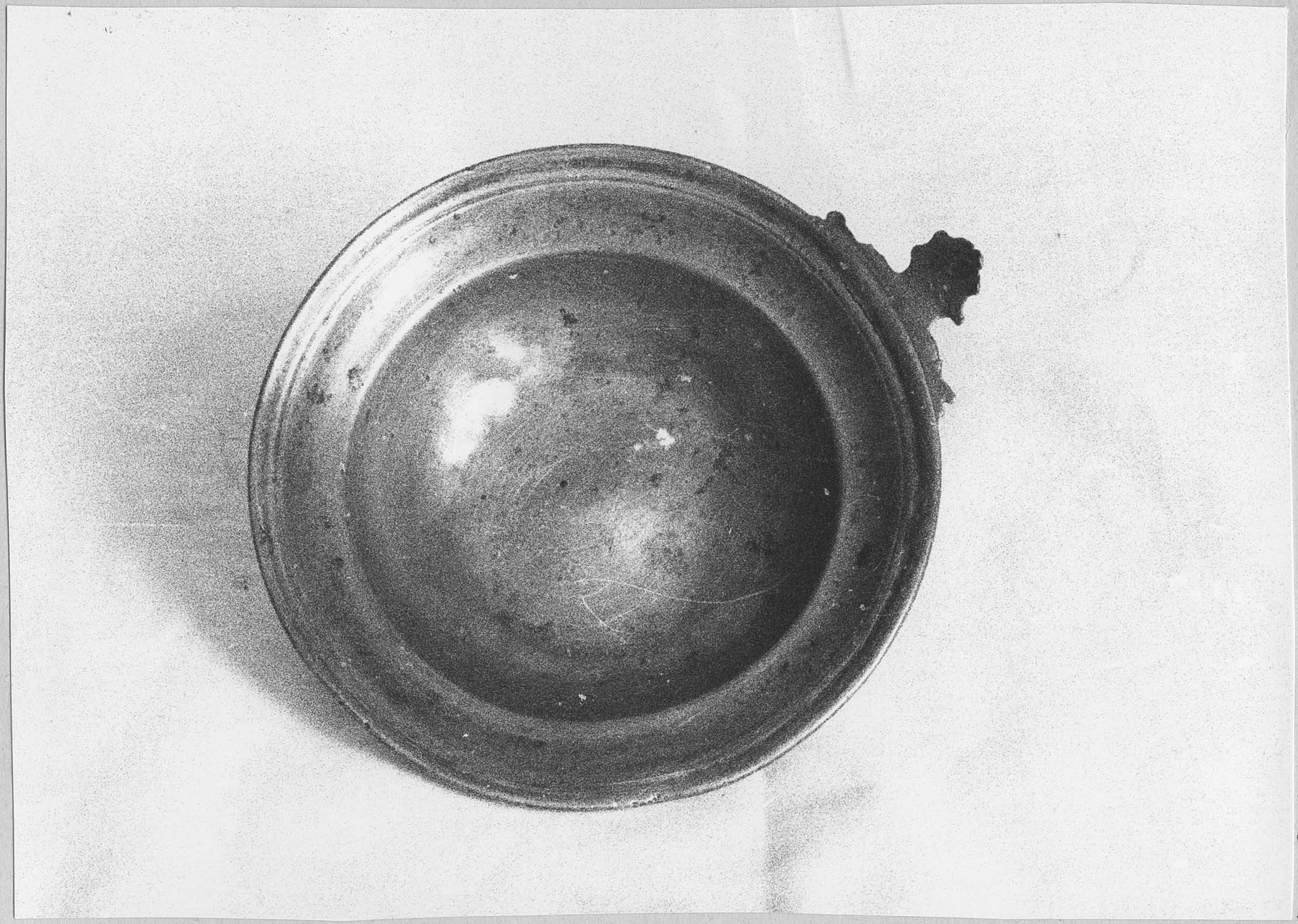 Poinçon : poinçon de contôle de Paris 1697 (au verso de l'oreille). Poinçon de ville : marque de Joinville (sur le fond).