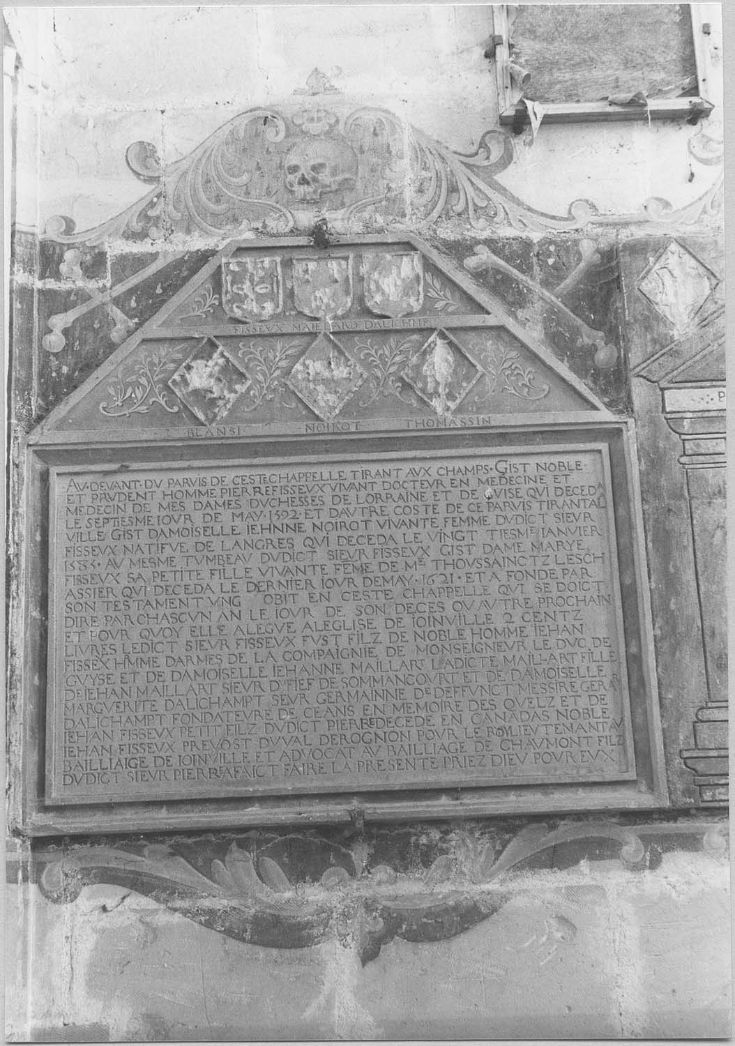épitaphe de Pierre Fisseux, docteur en médecine, et de sa femme, Jeanne Noirot, originaire de Langres