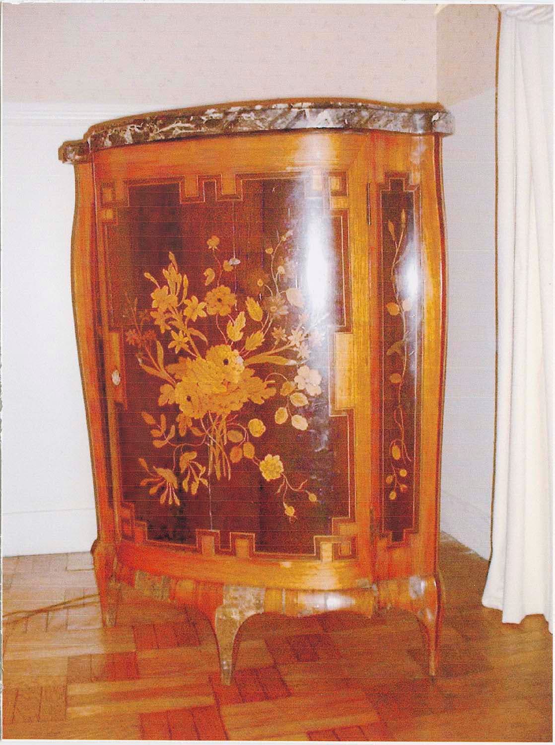 bois ; marbre (noir) ; marqueterie