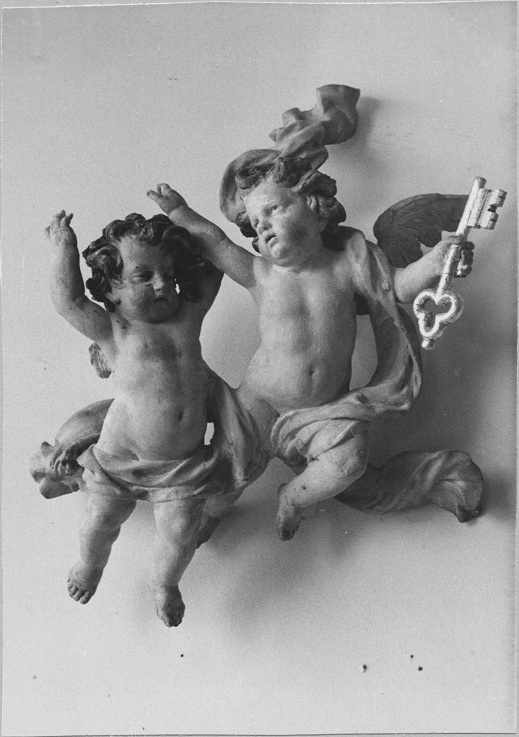 groupe sculpté : Saint Pierre avec deux angelots porteurs d'attributs
