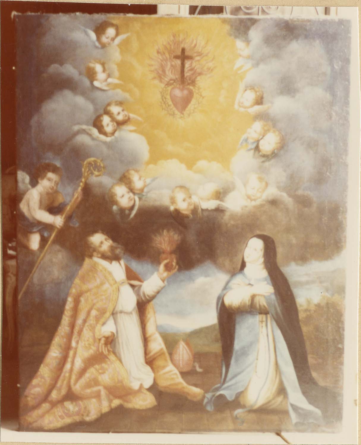 tableau : l'Apparition du Sacré-Coeur à saint Augustin et à sainte Victoire Fornari