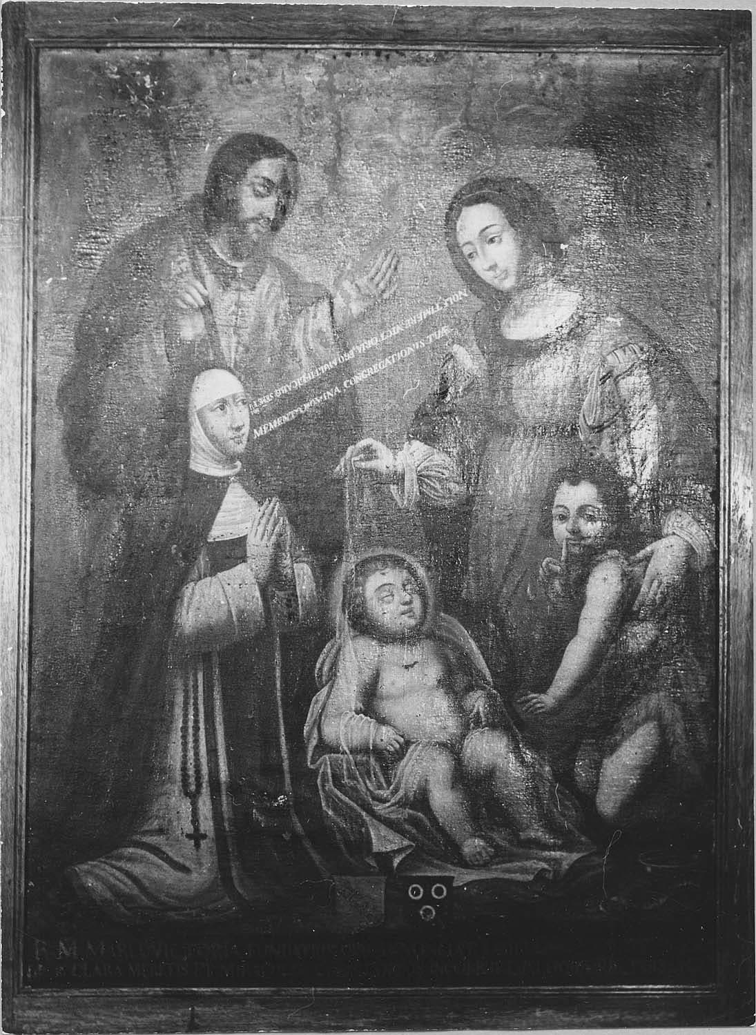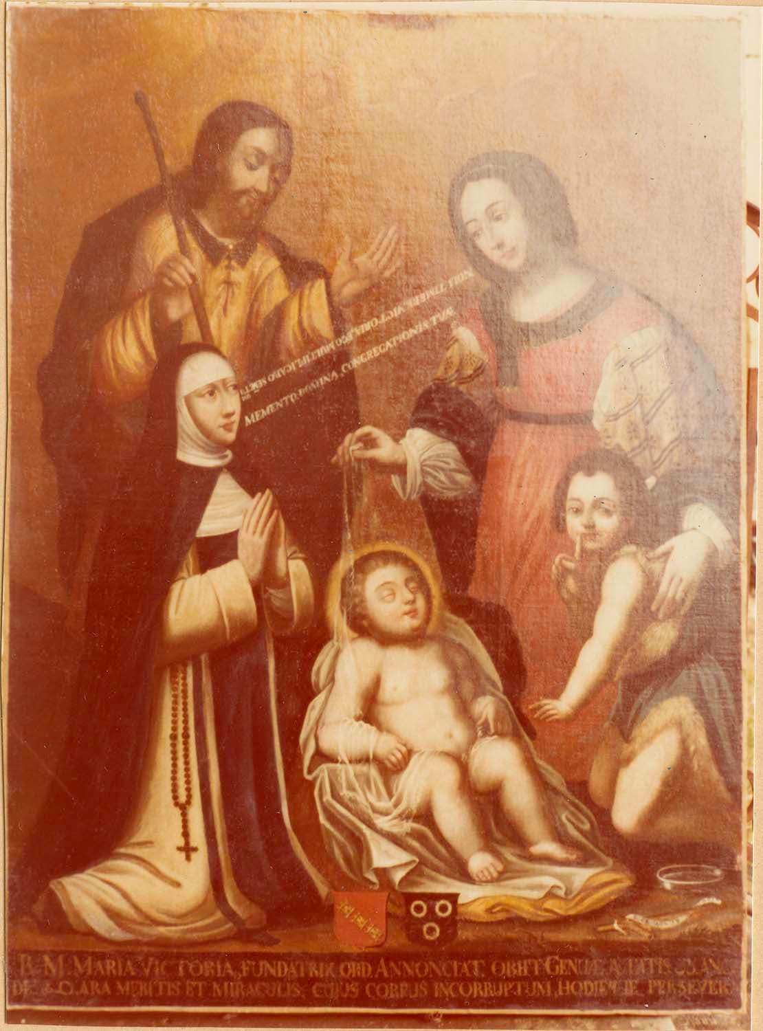 tableau : la Sainte Famille et la bienheureuse mère Victoire, à genoux, en donatrice