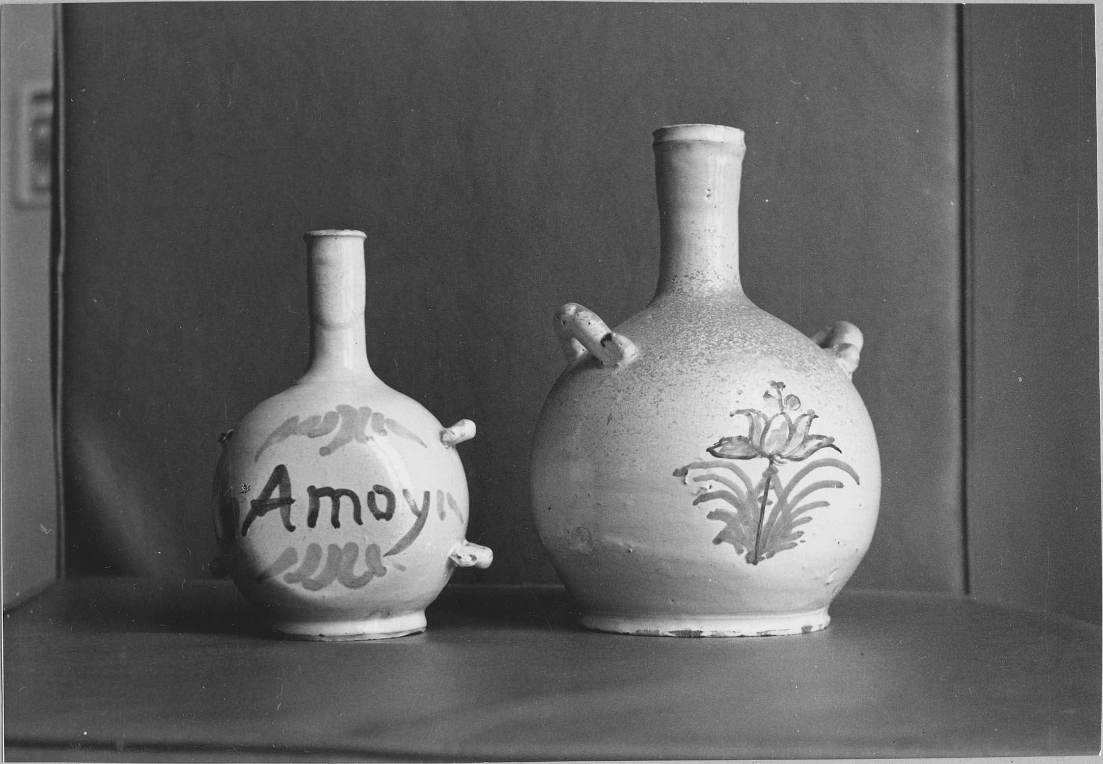 Fleurs bleues et feuilles vertes comme décor de la 2ème gourde.