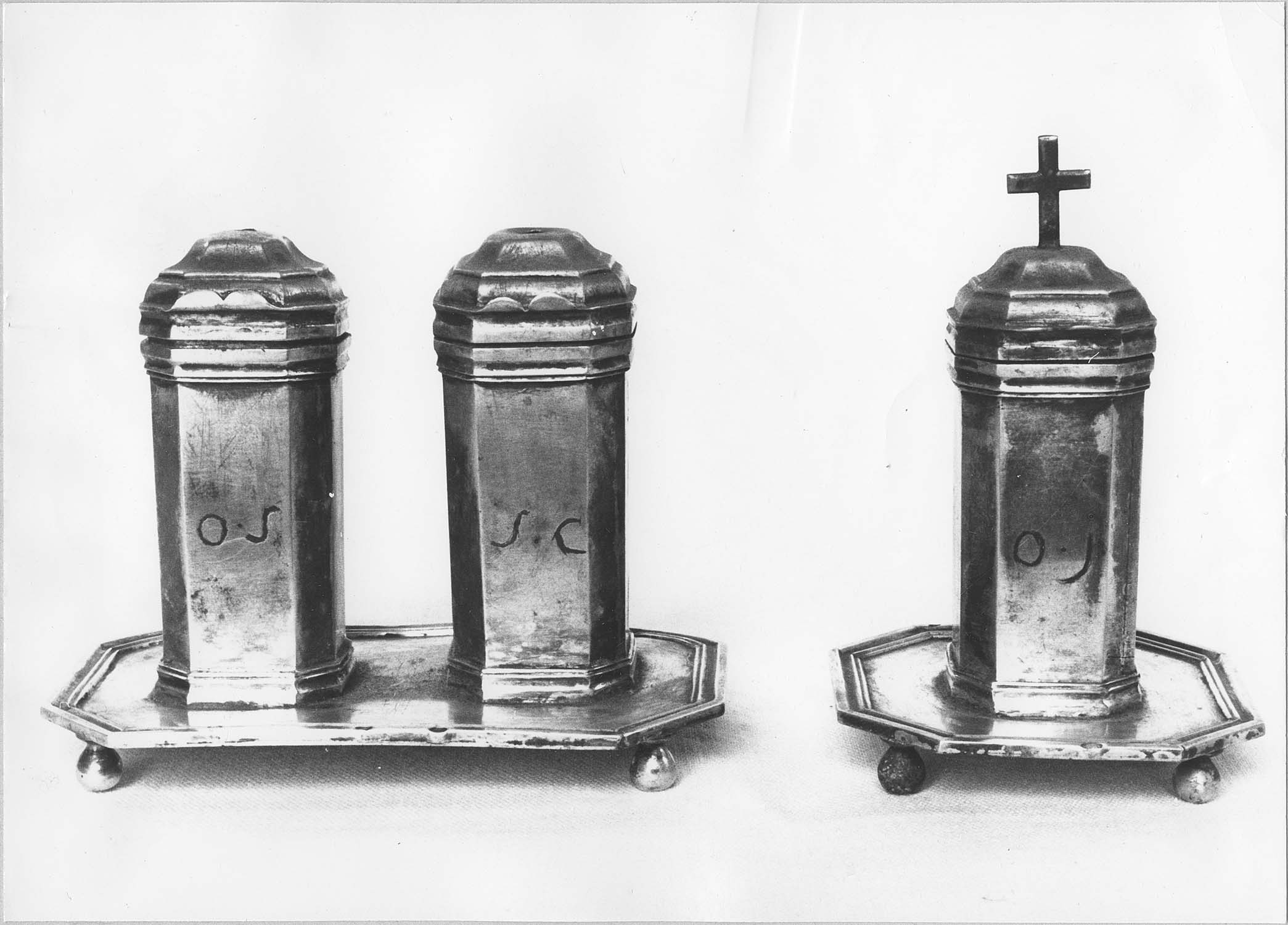 ampoule aux saintes huiles (3) ; plateau de présentation