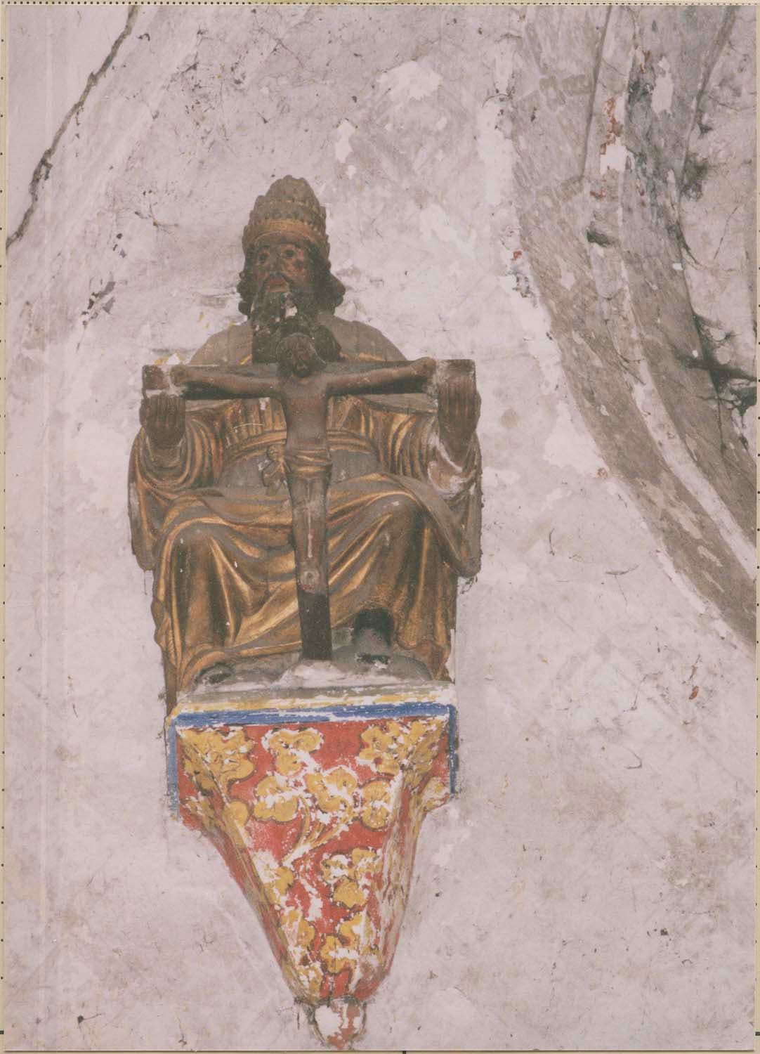 Statue de la Trinité (manque le Saint-Esprit) étant située à six mètres du sol, les dimensions n'ont pu être relevées.