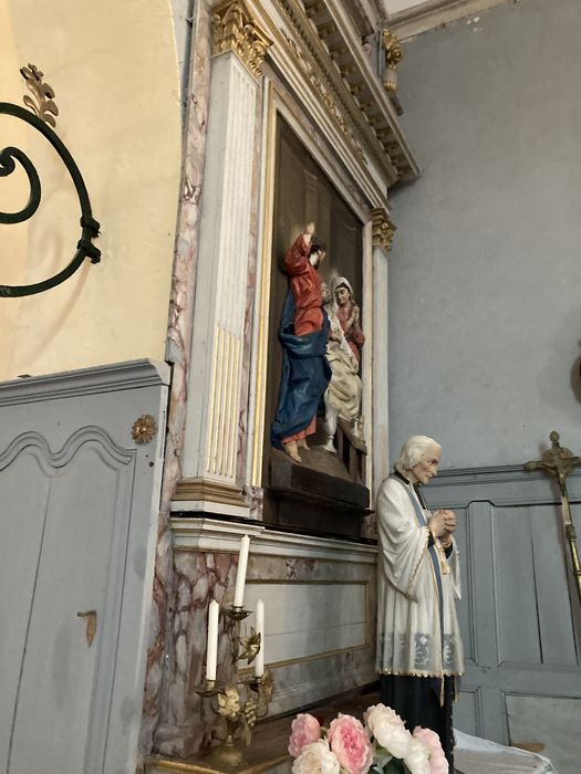 Autel latéral sud : retable de Saint Joseph agonisant entre la Christ et la Vierge, sculpture, bois polychrome.