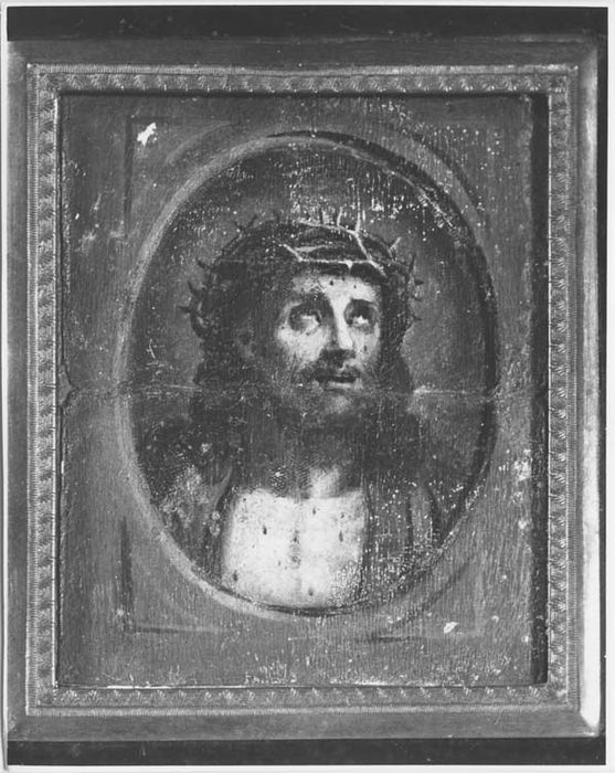 Christ couronné d'épines (buste), panneau peint, XVIIe (ou XIXe siècle).