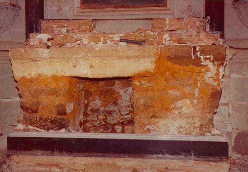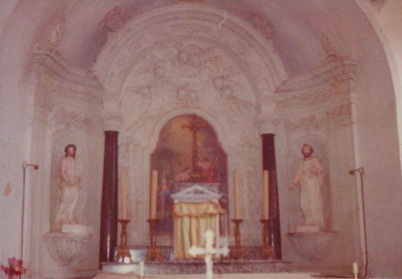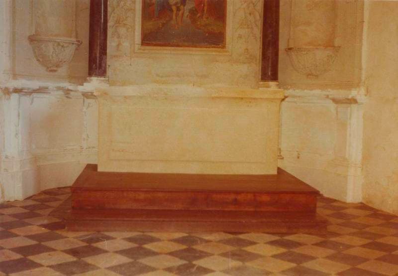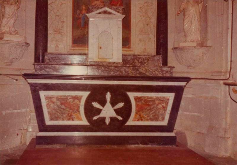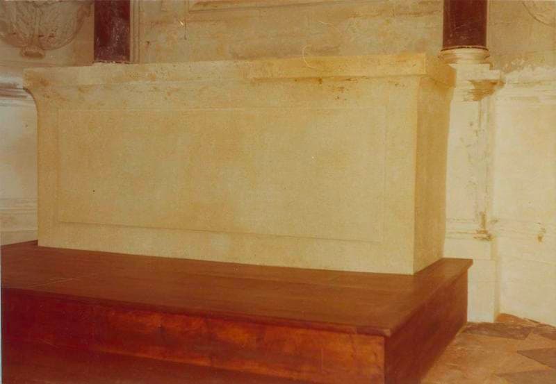 Autel en marbre du 19e siècle et retable en pierre sculptée du 18e siècle.