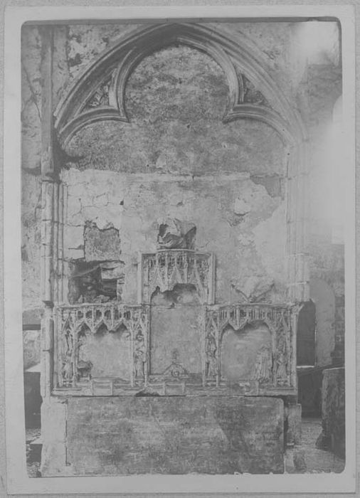 Restes de monument funéraire transférés à Laval en 1915 de l'église de l'ancienne abbaye de Clermont à Olivet.