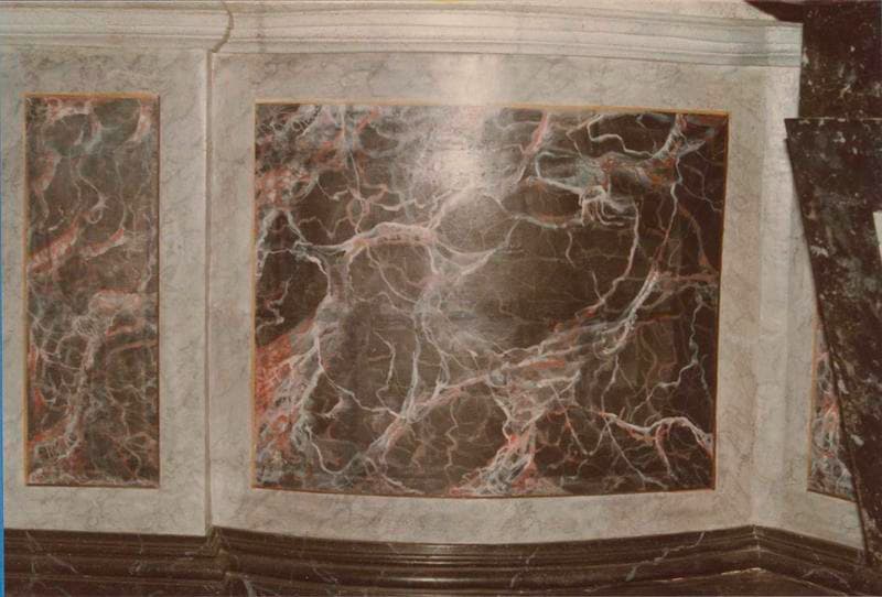 pierre ; marbre : taillé, doré ; terre cuite : peint ; fer : forgé