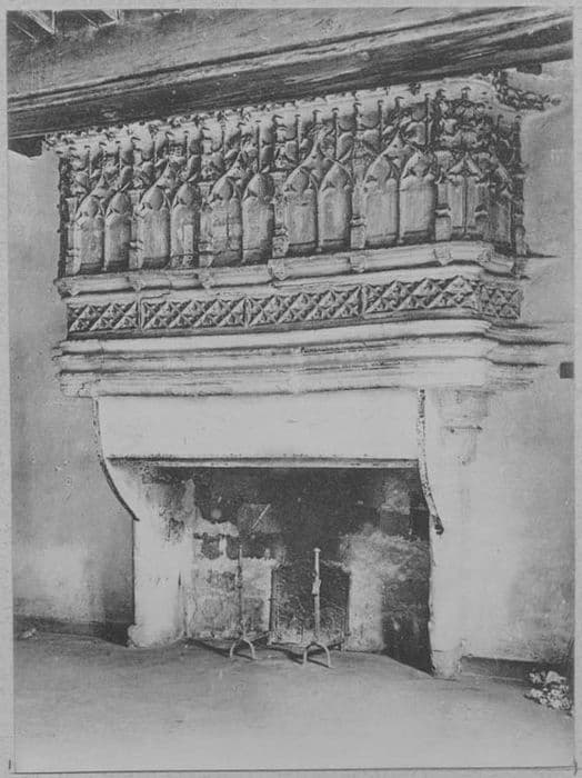 Cheminée en tuffeau dont la corniche présente une frise de losanges contenant des quadrilobes. Au-dessus est, pour la face, une série de cinq arcatures géminées en accolades à rampants et fleurons, entre des pinacles et des clochetons.