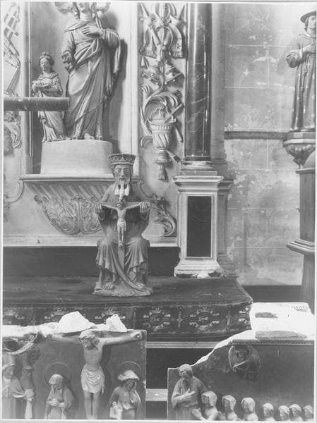 POP | Plateforme ouverte du patrimoineautel de la Trinité, groupe sculpté : la Trinité, 2 bas-reliefs : la Crucifixion, Saint Julien et saint Gilles présentant les dontateurs et leurs enfants