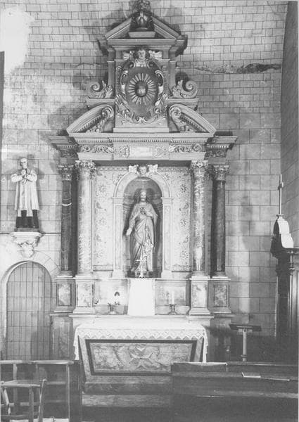 Retable en tuffeau composé de quatre colonnes de marbre encadrant une niche et supportant un entablement dominé par des frontons rompus et un corps carré surmonté d'un fronton triangulaire. Il est identique à celui de la Vierge.