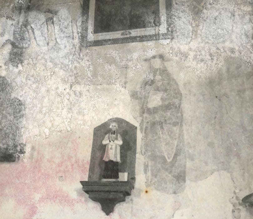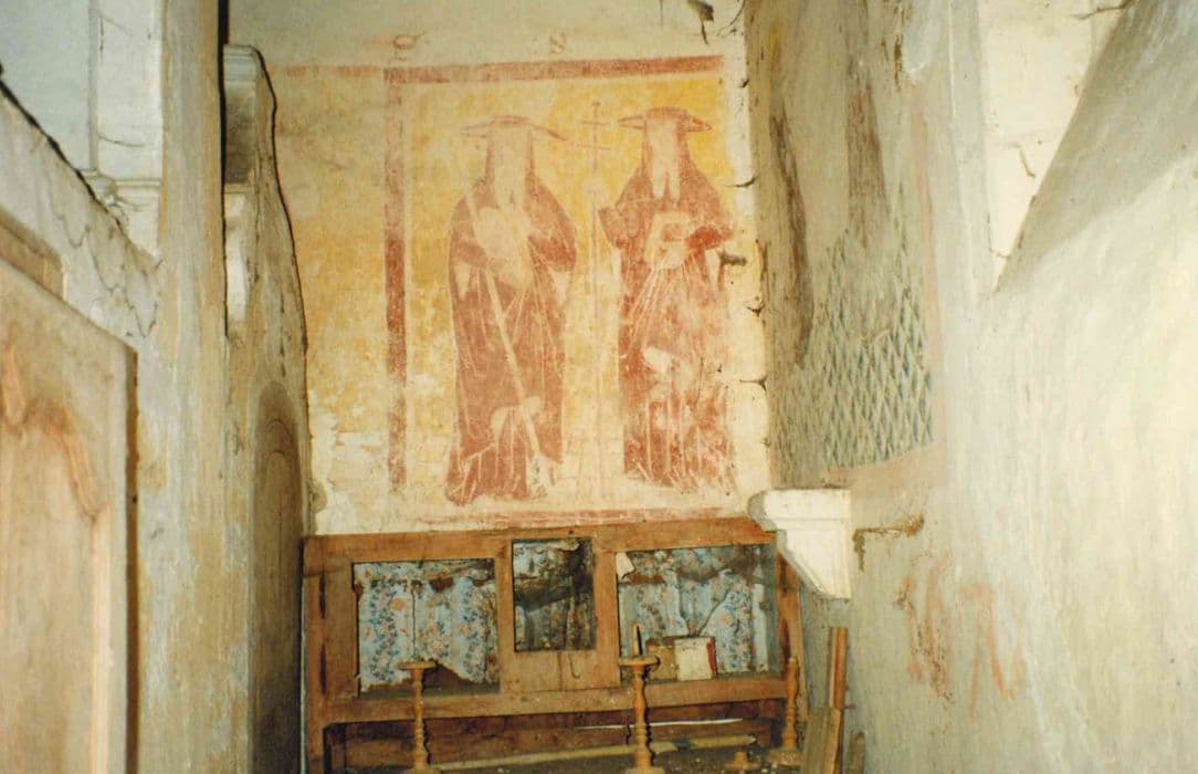 peintures monumentales : Blasons et saint Michel, Messe de saint Grégoire, Saint Christophe, Saint Cénéré