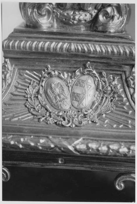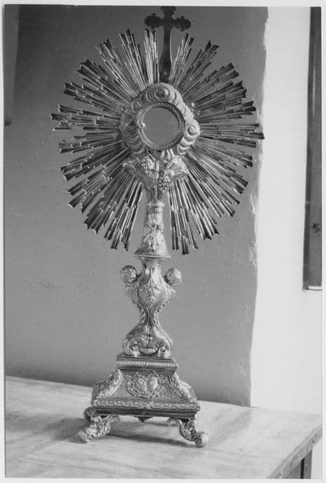 Ostensoir orné de têtes d'angelots, d'épis de blé et de motifs de vigne.