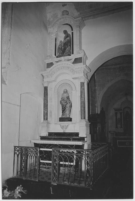autel de Sainte-Anne avec son retable, un groupe sculpté : Saint Joachim et la Vierge, son degré d'autel et sa clôture de chapelle