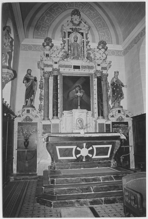 POP | Plateforme ouverte du patrimoineautel du maître-autel avec son retable, son tabernacle, son tableau d'autel : Christ portant sa croix, trois statues : Saint Martin, Saint Paul et Saint Louis, son degré d'autel et une console