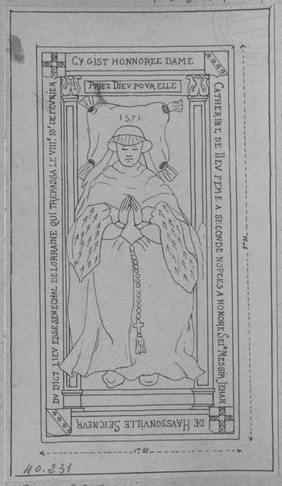 dalle funéraire de Catherine de Heu, seconde femme de Jean d'Haussonville