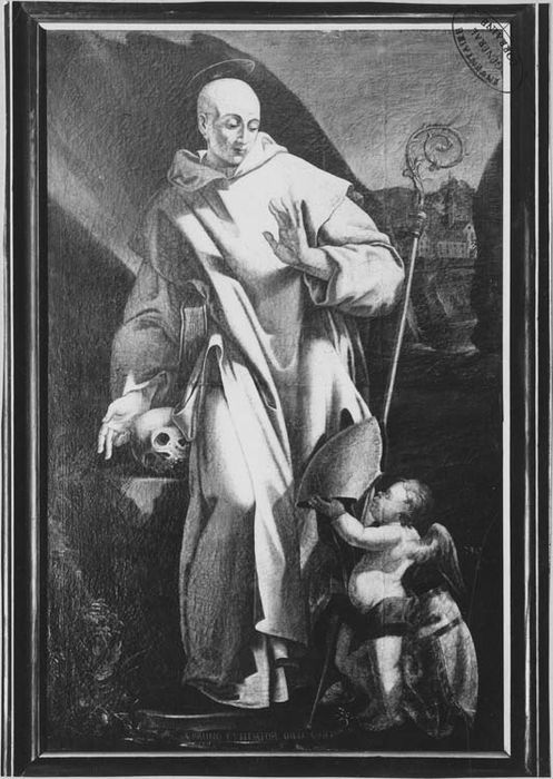 Anciennement daté de 1732. L'inscription latine qui désigne le saint au bas de la toile est, semble-t-il, une adjonction du 19e siècle. Cette toile pourrait provenir de la Chartreuse de Bosserville, établie en 1666.
