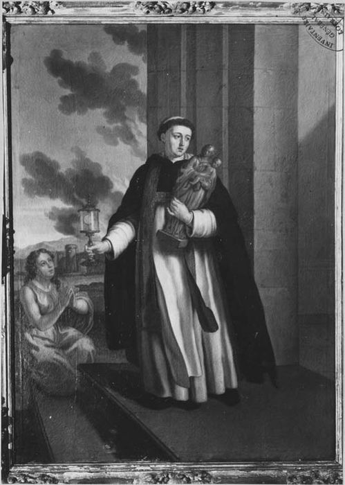Saint vénéré en Pologne, l'existence de son image à Lunéville, ville qui n'abrita pas de couvent de Dominicains, pourrait s'expliquer par la présence du roi Stanislas Leszczynski, successeur nominal des ducs de Lorraine. Lui fait pendant une toile représentant la Vierge remettant le Rosaire à saint Dominique et à sainte Catherine-de-Sienne.
