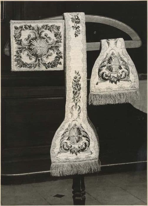 chasuble, étole, manipule, voile de calice, bourse de corporal