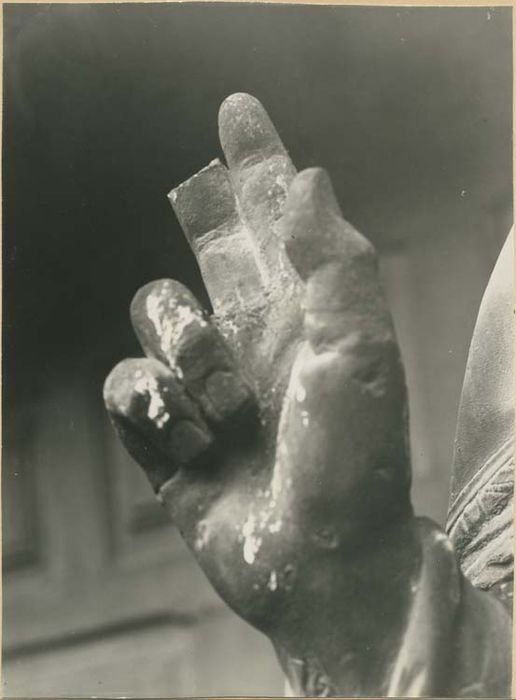 Attribuée à l'école de Ligier Richier. Pendant la révolution l'oeuvre aurait été déposée et cachée. C'est en 1802 qu'elle aurait été reposée à l'intérieur de l'église, sur l'autel patronal, avant de rejoindre à nouveau la façade en 1865.