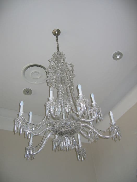 Les deux grands lustres comportent dix branches. Les deux appliques comportent cinq branches.