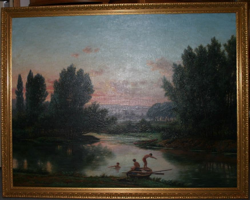 tableau et cadre : Etang et barque (Baignade)
