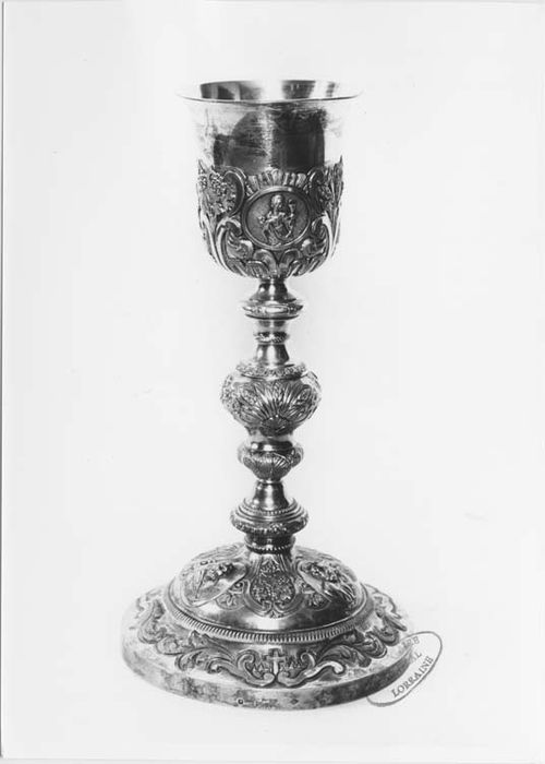 Transcription : souvenir des enfants de Marie Nancy 1856 ; poinçon de maître : Dejean ; marque d'auteur sur les médaillons : Montagny F.