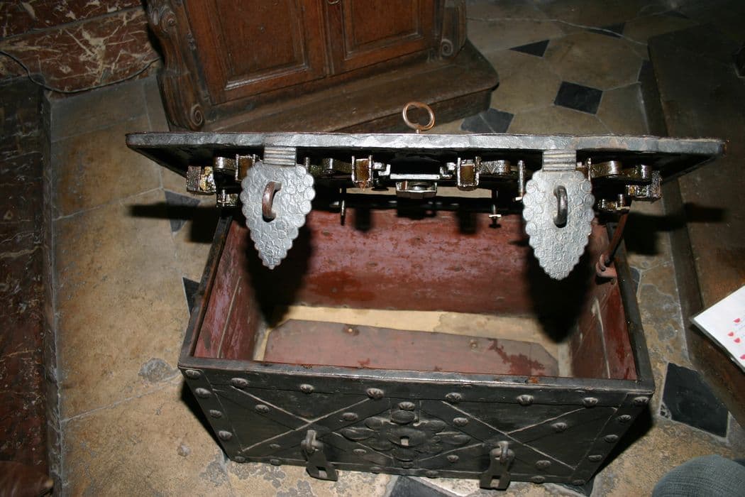 Coffre à serrure, bois