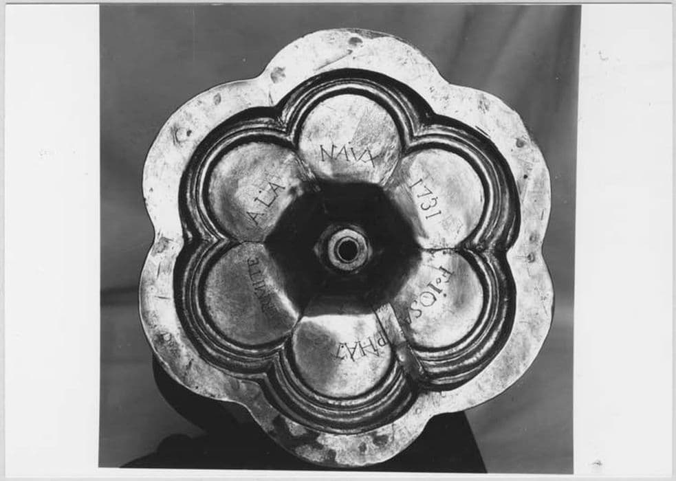 Le pied en cuivre est recouvert de plaques d'argent. La coupe est en argent doré.