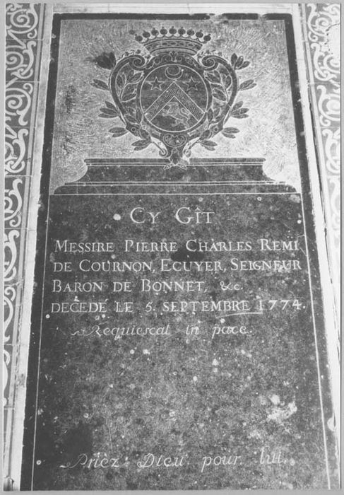 plaque funéraire de Pierre Charles Rémi de Cournon