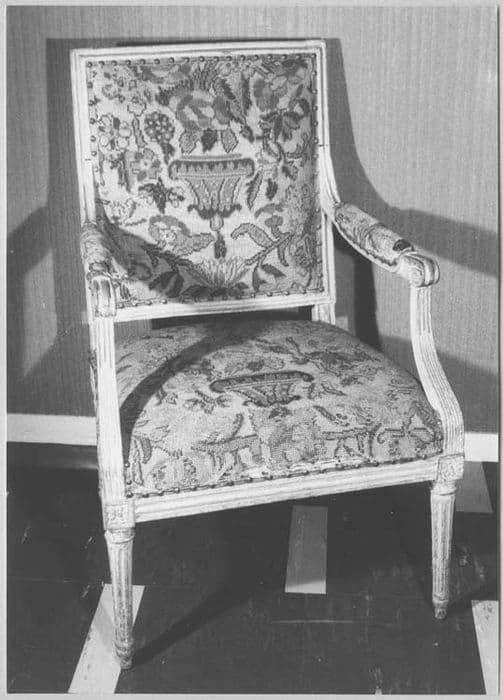 hêtre : peint ; tapisserie au point