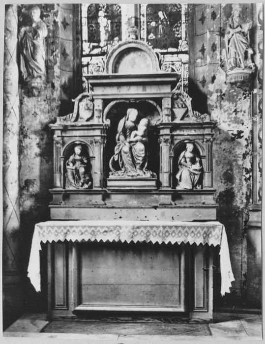 POP | Plateforme ouverte du patrimoineautel, retable, 3 statues : Vierge à l'Enfant, sainte Barbe, sainte Catherine