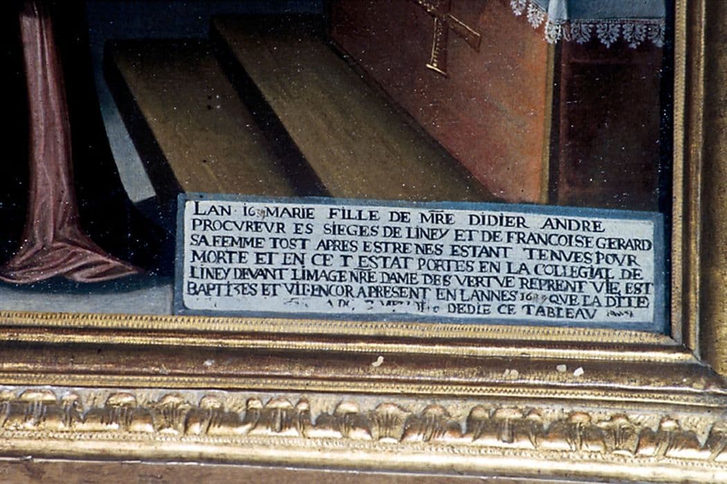 tableau ex-voto et son cadre : la Guérison de Marie André en 1632