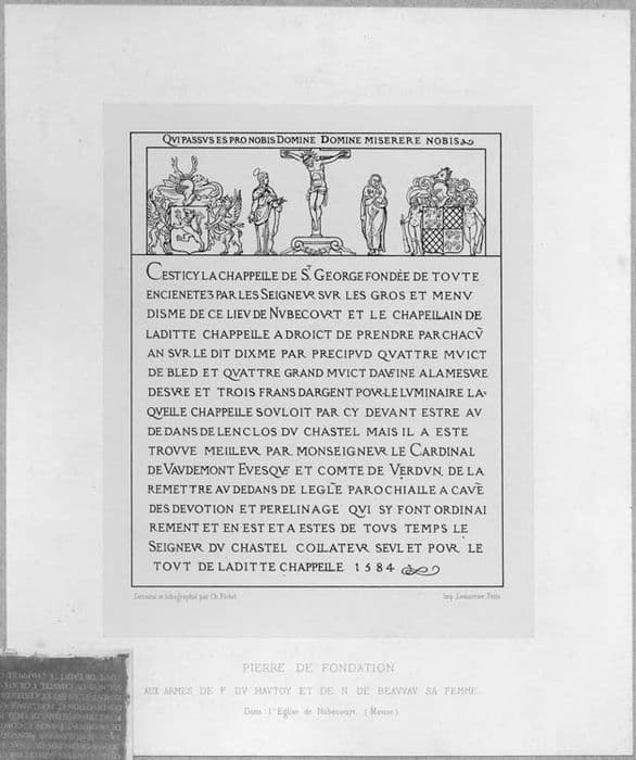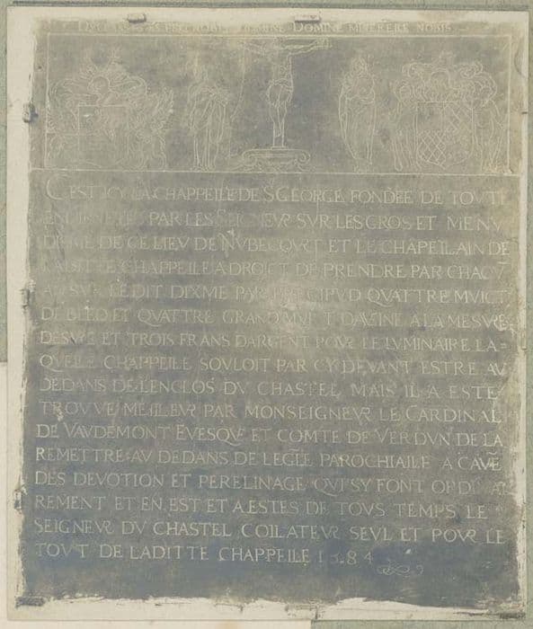 plaque commémorative de la fondation d'une chapelle par les seigneurs de Nubécourt
