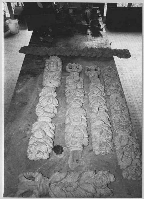 Ce décor du choeur est composé d'une travée droite suivie de l'abside à cinq pans et comprend 6 grands bas-reliefs mis en valeur par un important décor d'architecture avec emploi de l'ordre corinthien.