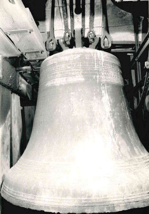 Bourdon en bronze, joug en bois, ferrures et battant en fer (joug et battant d'origine). Note : sol .
