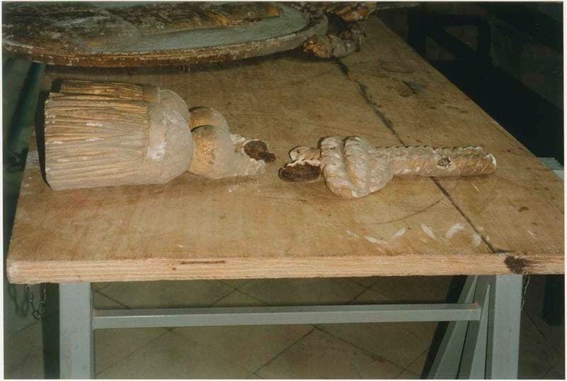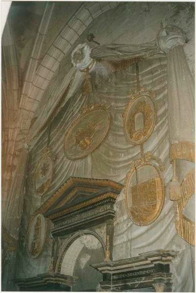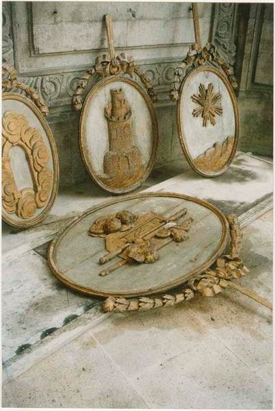 Le retable à colonnette en marbre et pierre est divisé en trois compartiments. Le manteau, ajouté, est en bois orné des symboles de la Vierge tirés des litanies.