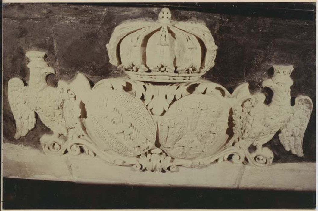 Armoiries de Bar et de Lorraine (sur la face antérieure). Graffiti ( 147 cm à partir de la gauche sur l'avant). Graffiti : CEST POZIZ Bun (à 92 cm de la gauche).