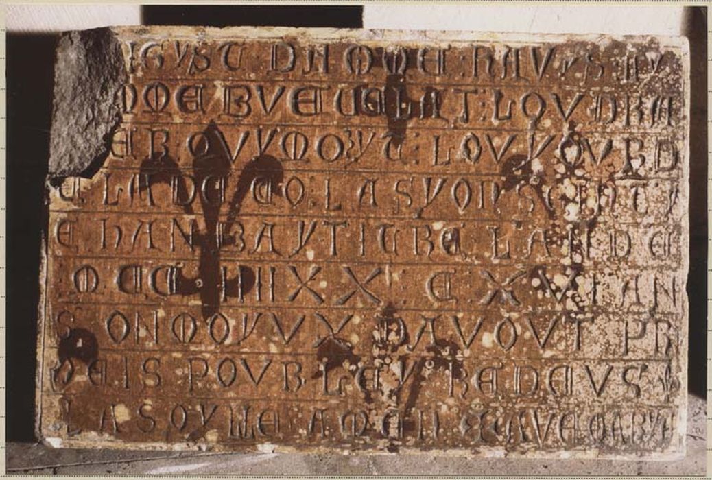 Datation : vers 1296. Il s'agit là de l'une des plus anciennes inscriptions conservées en Lorraine qui mérite à cet égard d'être protégée et mise en valeur.