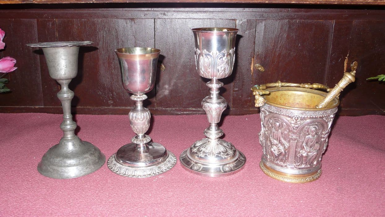 Intérieur de la coupe en argent doré. Pied circulaire et noeud piriforme. Fausse coupe en argent découpé.