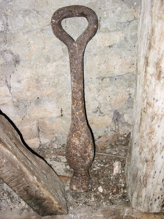 Deux cloches en bronze avec joug en chêne et battants en fer forgé, LA