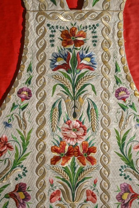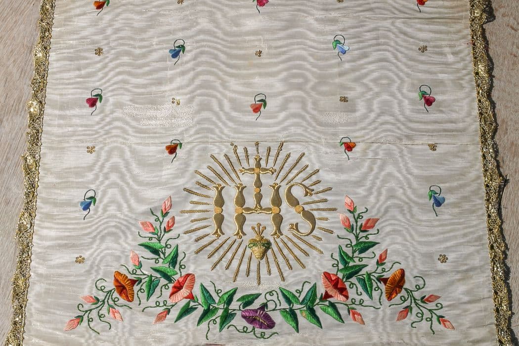 POP | Plateforme ouverte du patrimoineornement liturgique blanc comprenant une chasuble, une étole, un manipule, un voile de calice et une bourse